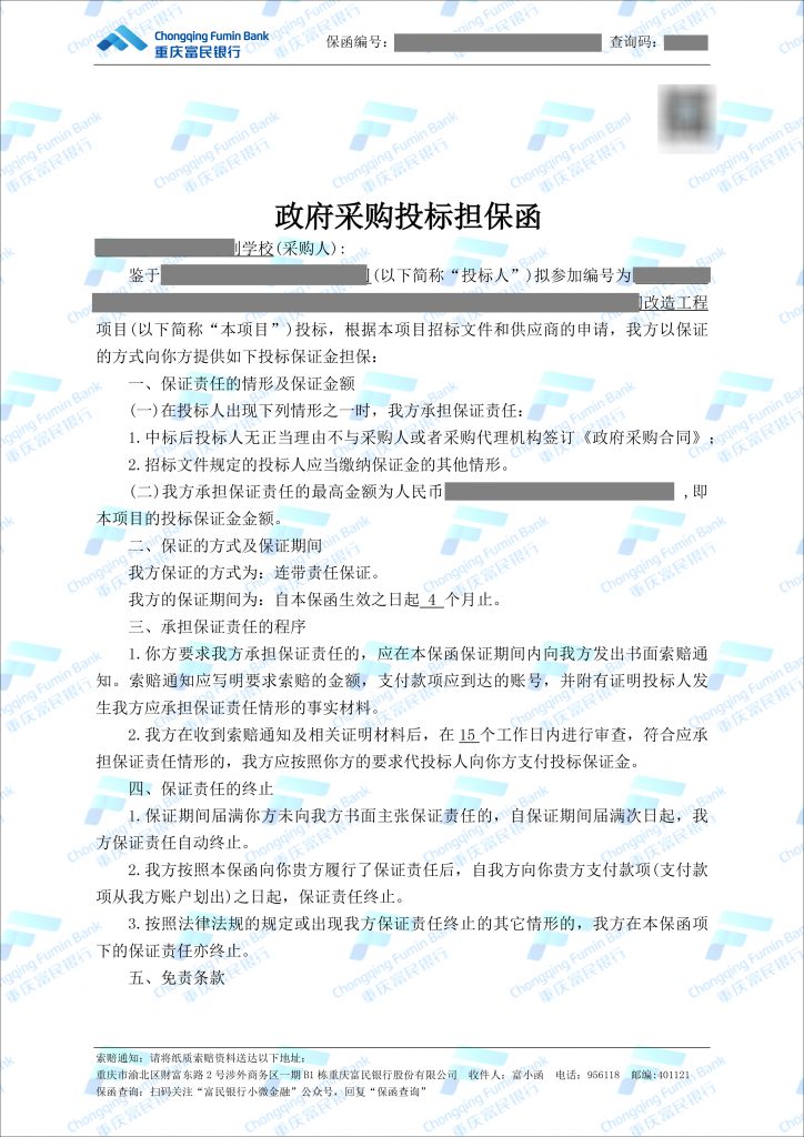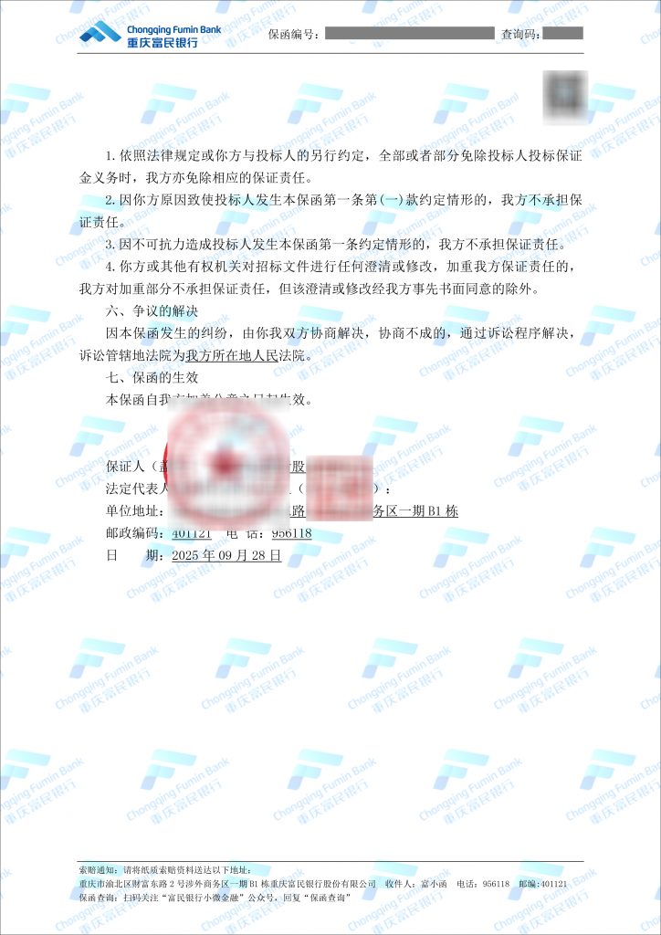 重庆富民银行电子保函,下午4点前提交,晚上67点出函,电子保函可以彩印出来做纸质保函使用。