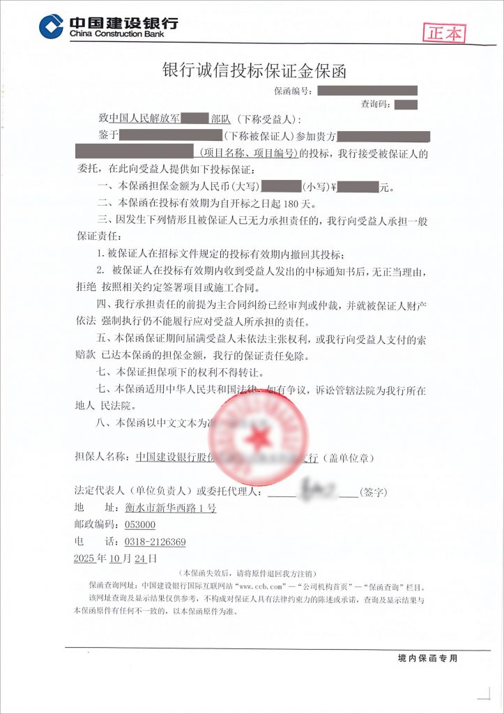 银行诚信投标保证金保函办理当天出函
