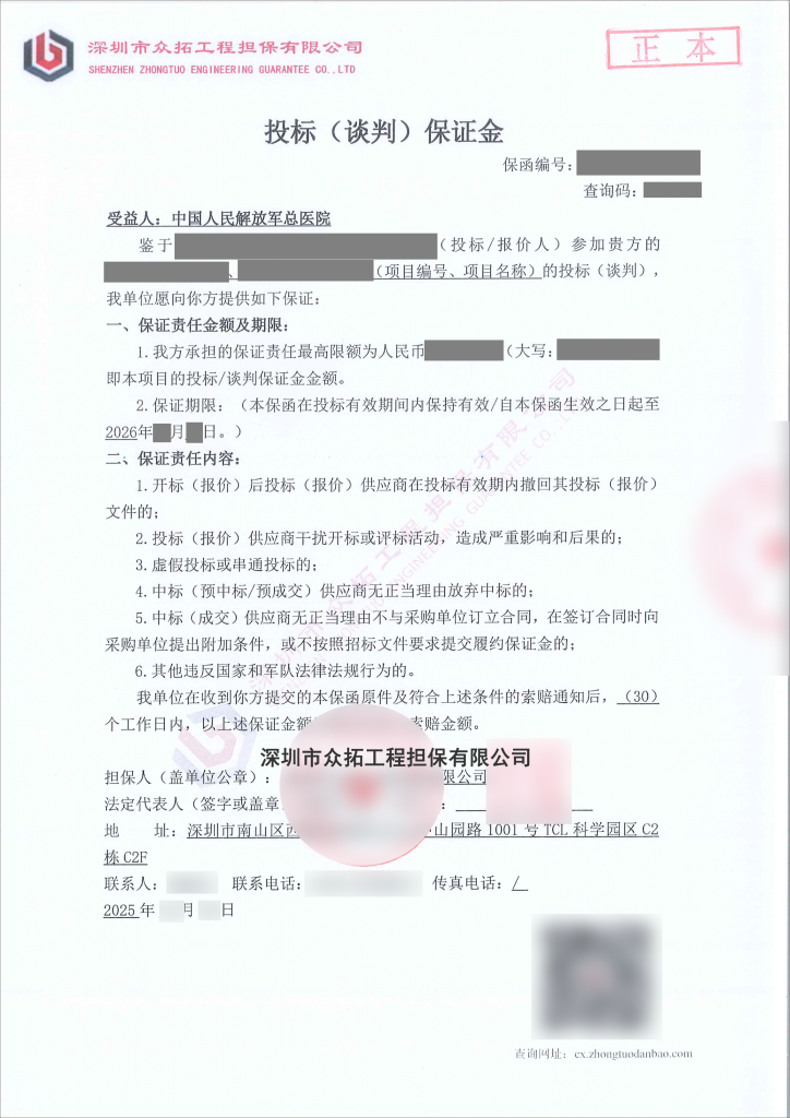 保函带保函编号和查询码,在深圳市众拓工程担保有限公司查询系统可查真伪。